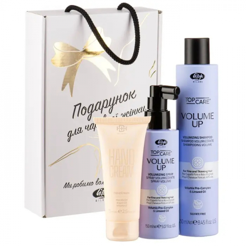 Lisap Volume Up Gift Set купити в Україні — оригінальний професійний подарунковий набір у магазині ParfumkaShop. Комплекс засобів створений для догляду за тонким і ослабленим волоссям, якому бракує густоти та об’єму. Підходить для жінок, які хочуть покращити зовнішній вигляд зачіски та спростити укладку.