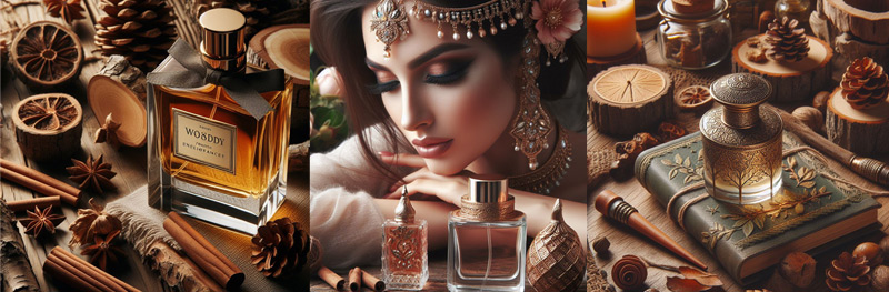 Визначальними компонентами деревних ароматів є ноти таких дерев, як кедр, уд, сандал, пачулі та кипарис. Ці природні інгредієнти створюють аромати з багатим, насиченим характером, що можуть бути одночасно і гострими, і м'якими, залежно від конкретної композиції.