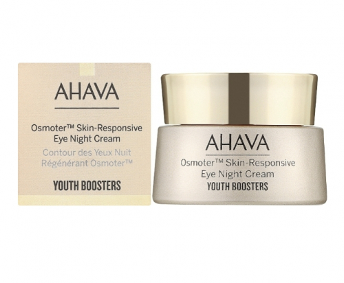 Ahava osmoter skin-responsive youth booster night cream збагачений пептидами та екстрактом водорості Dunaliella Salina, які ефективно борються з ознаками старіння, розгладжуючи зморшки та підвищуючи еластичність шкіри. Ніацинамід у складі сприяє вирівнюванню тону обличчя, а дріжджовий білок допомагає захистити шкіру від впливу синього світла, що особливо важливо в сучасному цифровому світі. Крем також сприяє зменшенню темних кіл під очима та надає шкірі здорового сяйва.