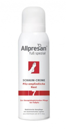 Крем-піна для ніг проти грибкових інфекцій Allpresan Foot Special No. 7 – це інноваційний засіб для догляду за шкірою стоп, розроблений спеціально для боротьби з мікозами. Якщо ви шукаєте ефективне рішення для підтримки здоров’я шкіри ніг, цей продукт стане вашим незамінним помічником. Завдяки унікальній формулі крем-пінка забезпечує інтенсивне зволоження, відновлення шкірного бар’єра та захист від грибкових інфекцій.