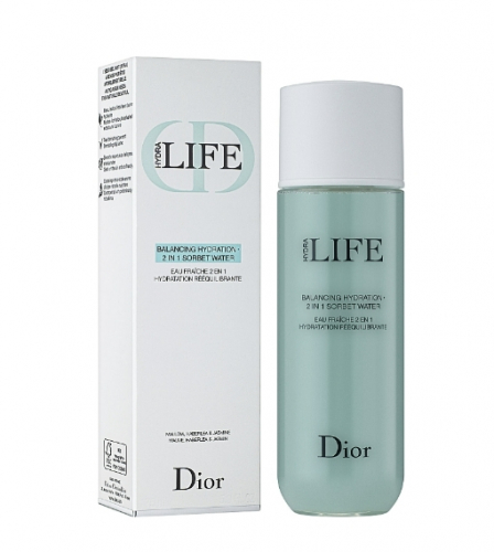 Christian Dior Hydra Life Balancing Hydration 2-in-1 Sorbet Water - це чудовий тонізувальний лосьйон, який базується на квіткових екстрактах. У складі продукту також присутні пребіотики, що сприяють відновленню шкірного балансу. Цей косметичний засіб прекрасно зволожує епідерміс, усуваючи відчуття «стягнутості», а також запобігає появі лущення. Лосьйон зменшує недосконалості, позбавляючи шкірний покрив від сального блиску, і сприяє звуженню пор.