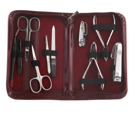 Состав набора: ножницы маникюрные – 2 шт, пинцет – 1 шт, пилка – 1 шт, лопатка – 2 шт, щипцы – 2 шт, кусачки – 2 шт