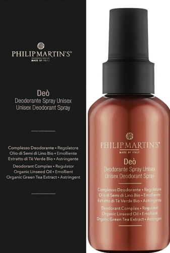 Philip Martin's – це відомий італійський бренд, який спеціалізується на створенні органічної косметики преміум-класу. Всі продукти бренду виготовляються з натуральних інгредієнтів найвищої якості та проходять строгий контроль якості. Дезодорант-спрей Deo' Unisex Deodorant Spray – це втілення філософії бренду: гармонія природи та турбота про ваше здоров'я.